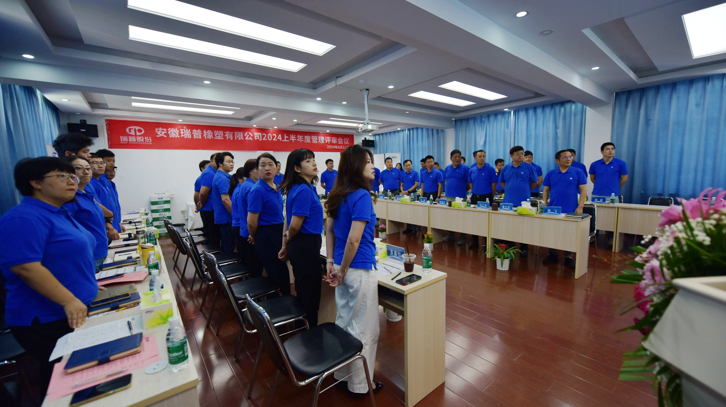 安徽瑞普橡塑有限公司于2024年8月31日舉行了半年度管理評審會議,會議以一曲《歌唱祖國》作為開場。隨后,各部門負責人依次上臺,就半年度的工作進行了詳盡的匯報。